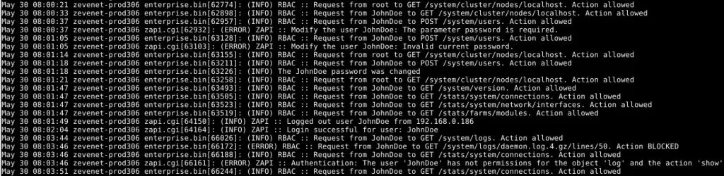In addition, an the new RBAC provides an Audit system where all the interactions from users accessing to the load balancer or applying any of their actions are logged, so any change in the load balancer can be audited and controlled by the security team, successful or forbidden ones with their corresponding tag.
