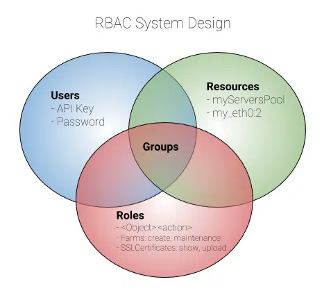 The main goal of implementing a Role Based Access Control (RBAC) system is to provide to any organization a flexible tool to manage their users, roles and resources defined in the load balancer, such as virtual services or virtual network interfaces. Given that ability, different roles in an organization like network administrators, system administrators, devops, developers or operators, can control their own resources allowing a more agile work group and isolating different projects and scopes.