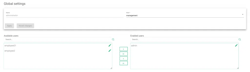 After re-configuring the group, click on the Apply button to store the configuration. A confirmation message will appear at the bottom left corner of the browser.
