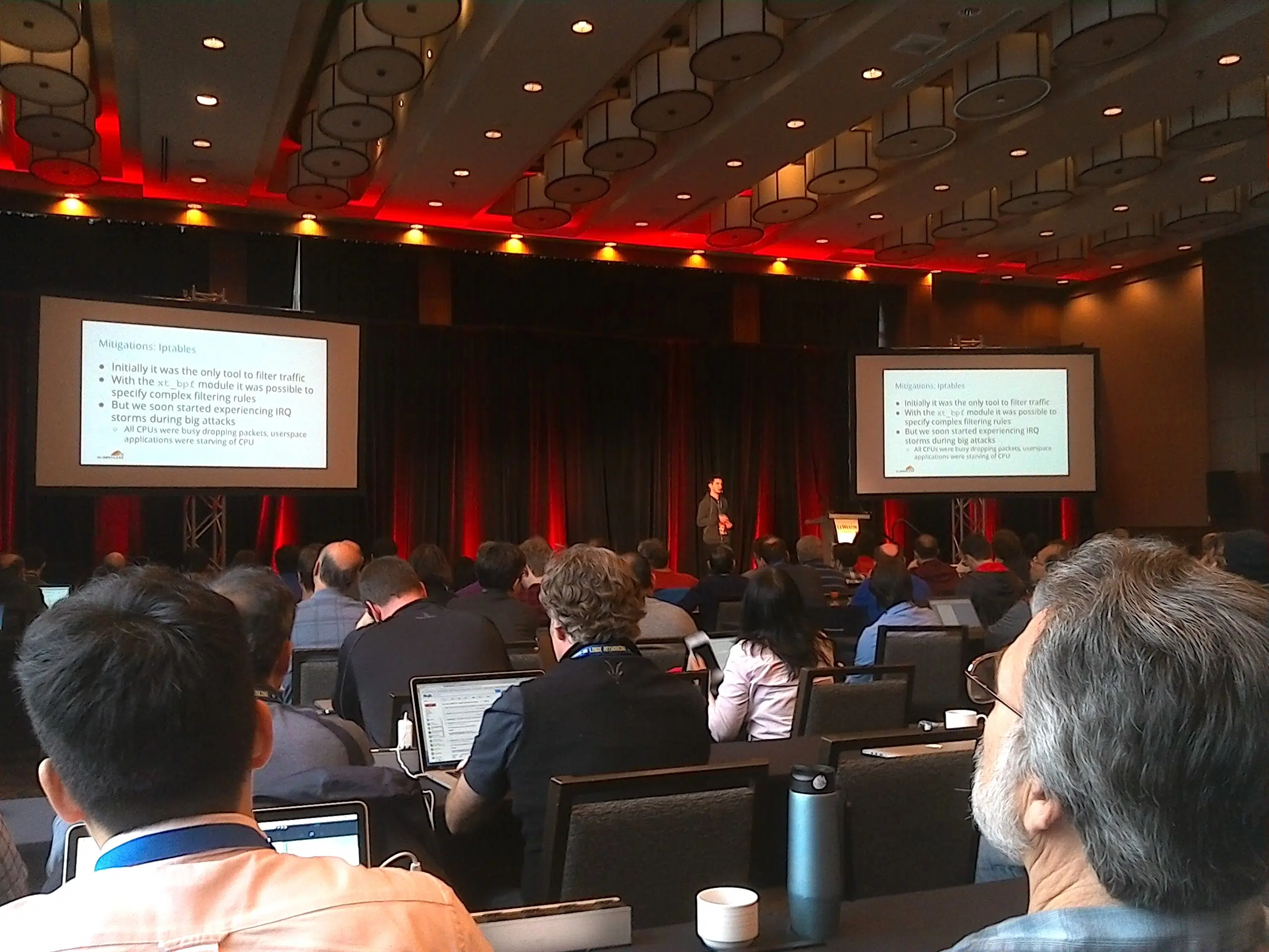 By other hand, DDoS protection topics has been quite popular due to the concern of the big ones to build high performance protections against such severe threats. In this matter, Gilberto Bertin from Cloudflare presented their current implementation for DDoS mitigation at L3 called GateBot using iptables (currently, not testing with nftables from ingress) and their approach using XDP and BPF. Facebook for instance, presented their DDos mitigation and L4LB system based on 2 maps to maintain a consistent hashing and sessions persistence.