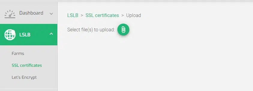 In this section, you’ll upload SSL Certificates for the LSLB farm using the Upload Certificate action. When you click the Upload button, it’ll open a file form for uploading a PEM certificate to the load balancer. Locate and select a file from the local machine, then upload it. It will be shown in the list of certificates.