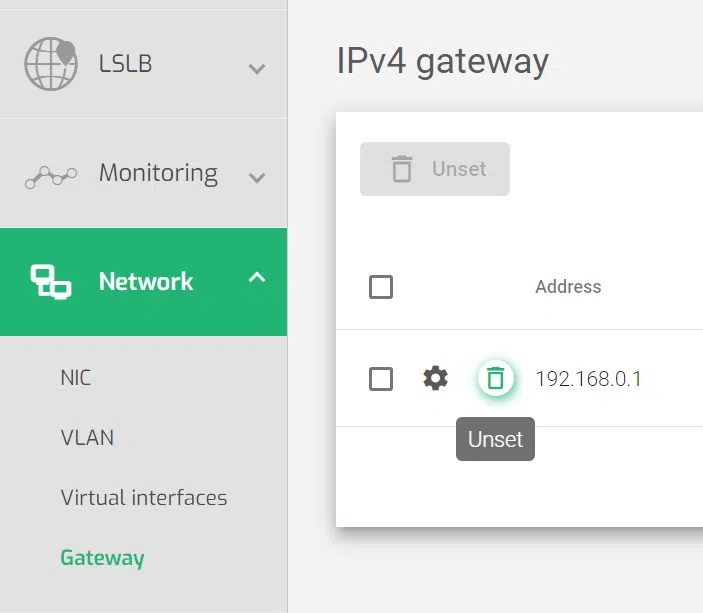 - Click the Confirm button to confirm. You will have removed the Gateway settings.