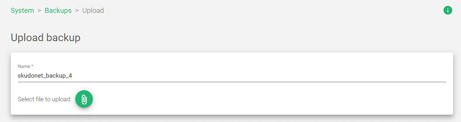 - Click the Paper Clip button to locate the file on your local disk. The backup file must be in .tar.gz format.
