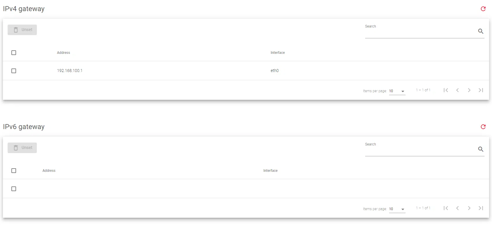 - Unset: Removes the configuration and its default gateway.