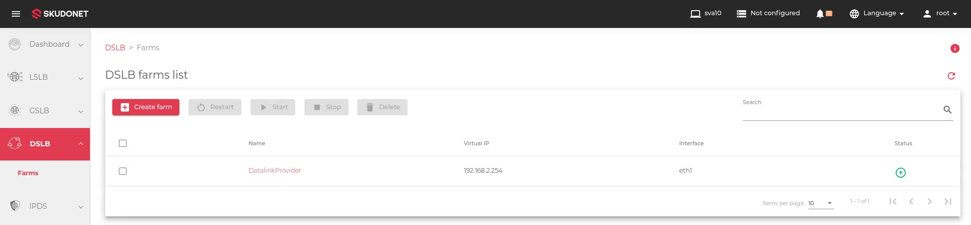• Start. This action is only available if the farm is stopped. The service will bind to the configured IP and interface, and hence the traffic through them will be handled by the farm.