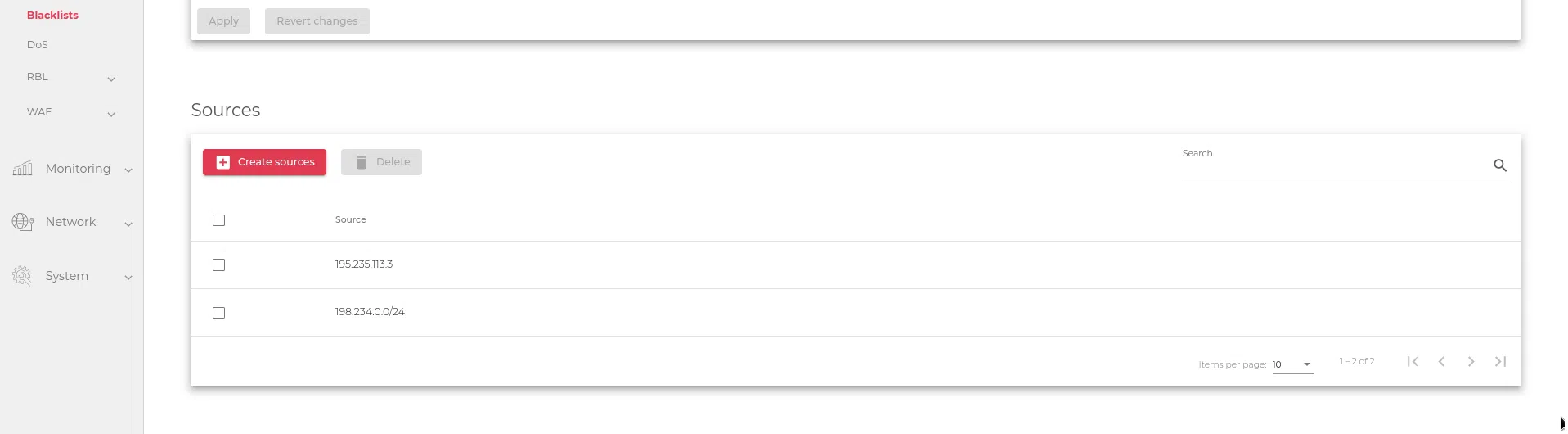 For Local Blacklists, you need to add the IP addresses or subnets that you want to Block or Allow in the Sources section.