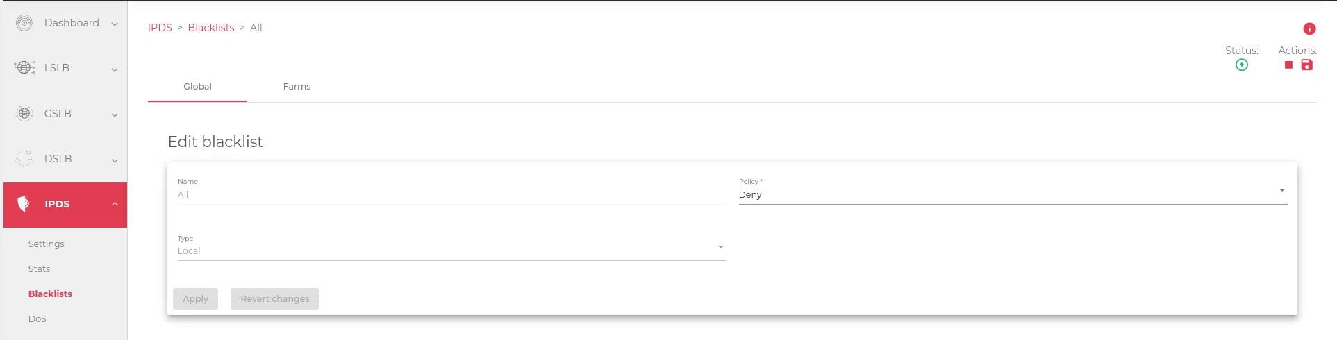 The Settings section for the current blacklist has two tabs; Global and Farms.