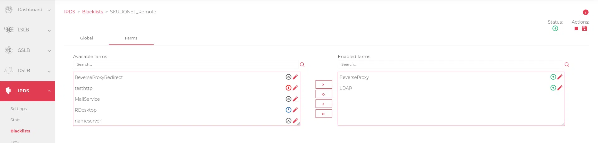 In this section, you can select one or more farms to associate or disassociate the blacklist rule and apply or revoke the rule from all available farms using the double arrow buttons.