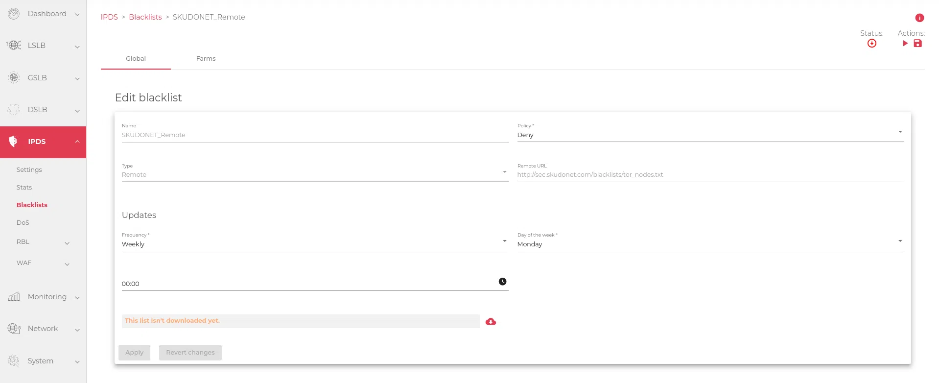 Remote URL: The remote file containing the blacklist must be in plain text format, with each IP address or subnet on a separate line.