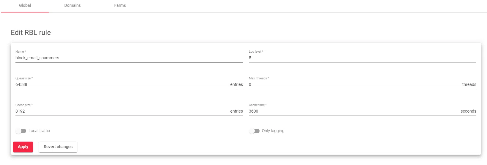 - Cache Size: The number of cached entries that are stored for the time specified by the Cache Time setting. When a DNS resolution is done against the RBL remote Server this resolution is saved in the Cache.