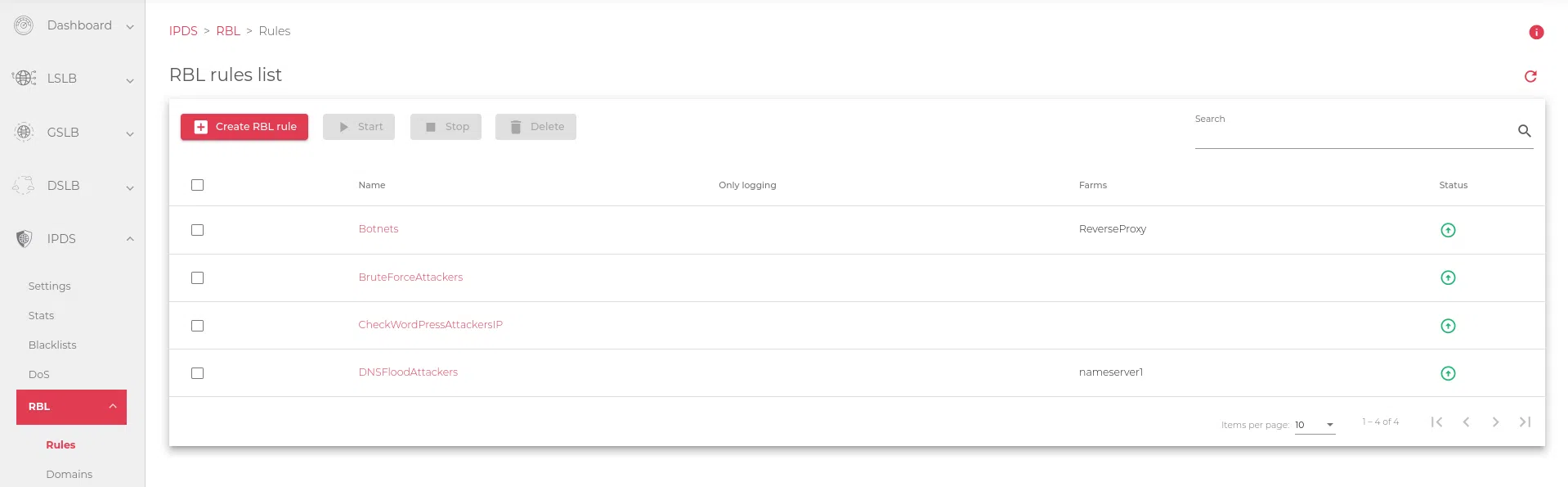 An RBL(Real-time Blocklist), also known as a DNS-based blocklist (DNSBL), is a spam-fighting tool that maintains lists of IP addresses associated with malicious-related activities. These blocklists method has been used by email servers in the past offering a way of blocking source IPs in user, but SKUDONET offers the possibility of doing the same job but in an early stage of the operating system, in Kernel Space, doing the same task faster so in a better and more efficient way.