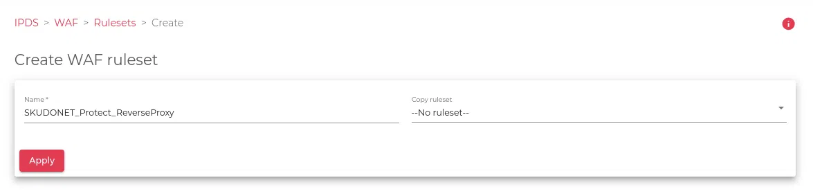 - Go to IPDS > WAF > Rulesets.