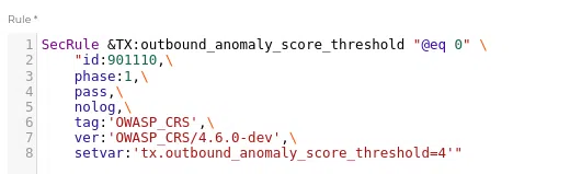 - Pass: WAF will continue evaluating the next rule without cutting the HTTP transaction.