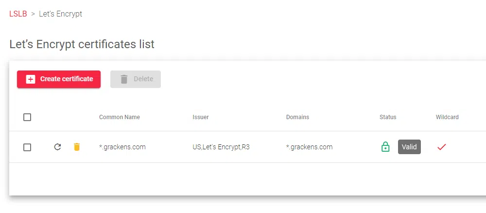 - Click LSLB >> Let’s Encrypt >> Create Certificate