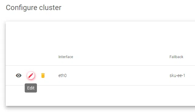 - Hover over the Node on the System > Cluster page and click the Edit button with a Pencil Icon.