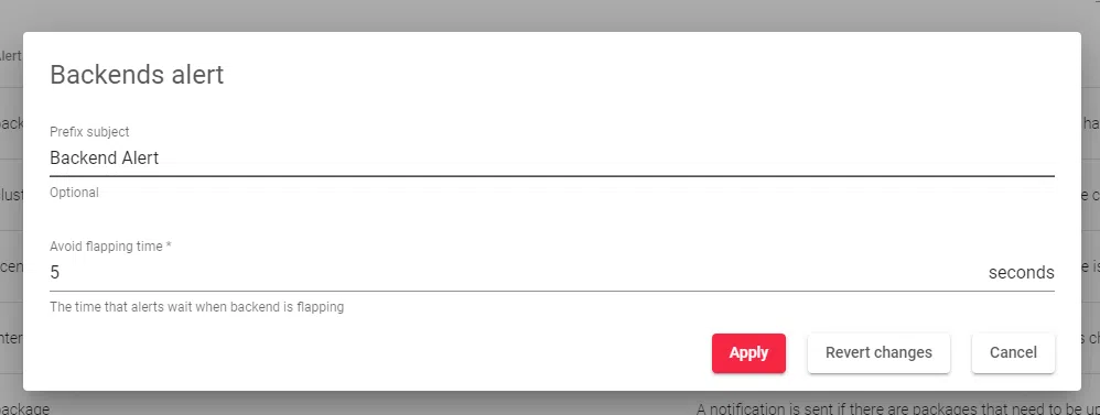 - Avoid Flapping Time: Prevent backend status notifications for a set period after the backend is enabled or disabled.