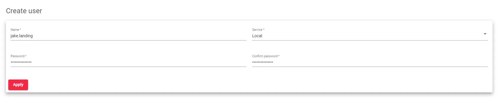 - Click the Apply button to create the user.