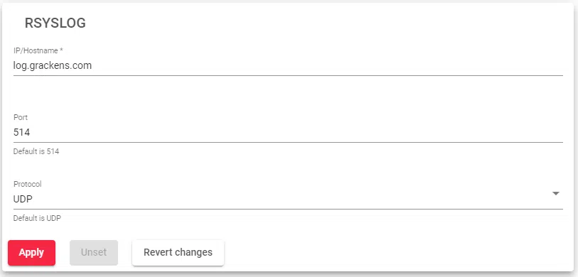 IP/Hostname: This is the address of the Rsyslog server which you want to send your log files.