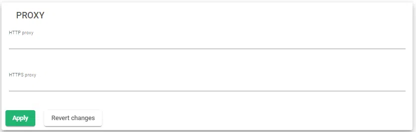 • To configure a proxy for HTTPS requests, enter the full URL of an HTTPS proxy in the HTTPS Proxy field. For example, https://myproxy:443.
