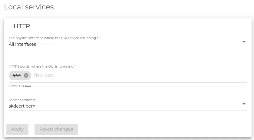 • HTTPS Port where the GUI service is running: This is the port used by the web GUI service for administrative and operational purposes. The default port is 444.