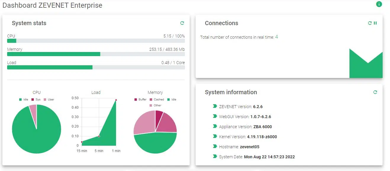 Dashboard | ZEVENET Enterprise 6.2