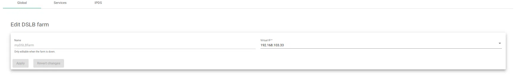 Virtual IP. This is the virtual IP address to which the farm will be bound, and will accept incoming connections. Ensure that the new virtual IP is not in use.