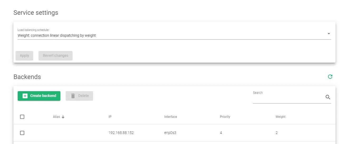 - Weight: The connection use linear dispatching by weight. Balance connections depend on the weight value that has been assigned to every backend. The requests are delivered using a probabilistic algorithm using the weight defined.