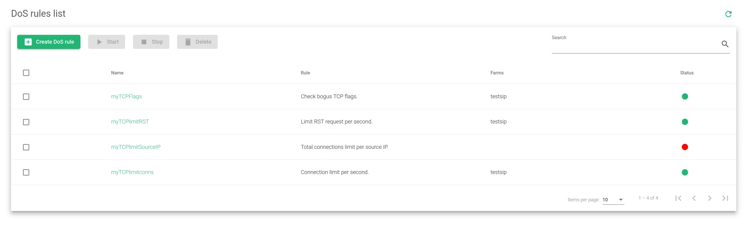 - Create DoS rule. Create a new rule to be assigned to certain farm services.