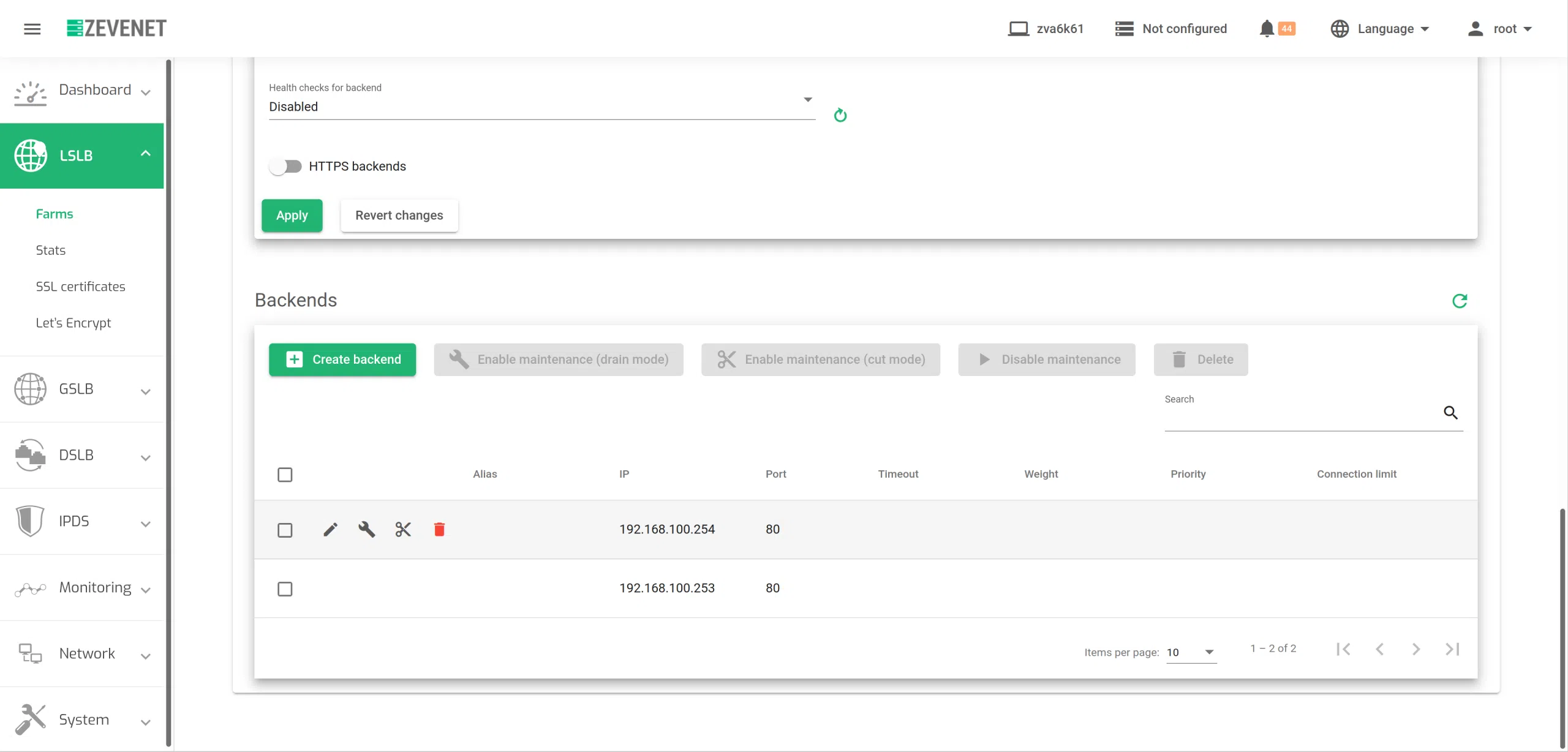 Regarding the Backends, the HTTP farm profile allows the configuration of the following properties: All the backends must be IPv4 or IPv6, and with the same IP version as the Farm VIP.