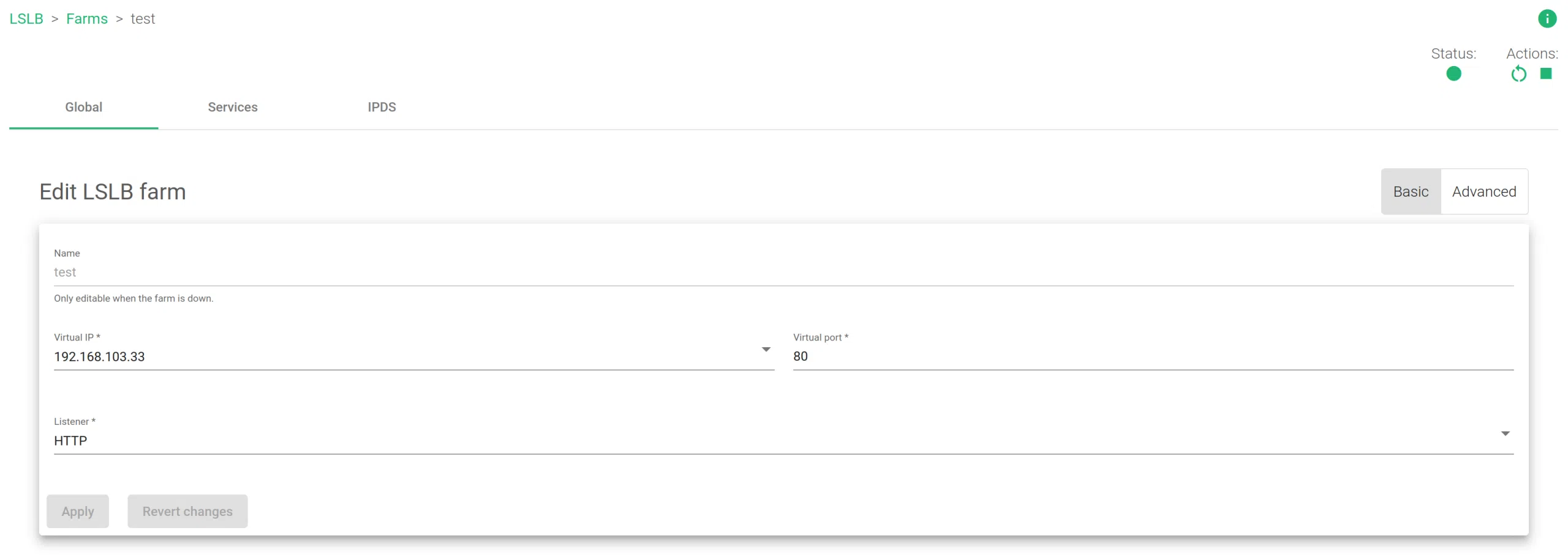 - Green: Means the farm is UP and all backends are running. It could also mean a redirect is configured.