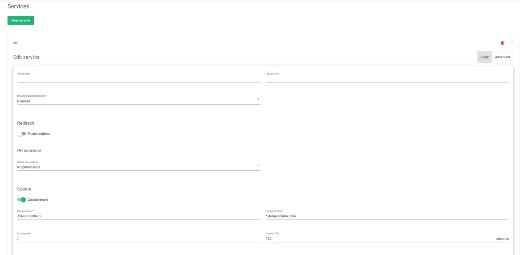 Like a reverse proxy, each HTTP(S) farm (or virtual service) manages several services, therefore one HTTP virtual IP and port pair can handle more than one load-balanced web services. Therefore, there is a section called service within the HTTP farm that offers virtual host flexibility and allows the creation of lists of backends for each service.