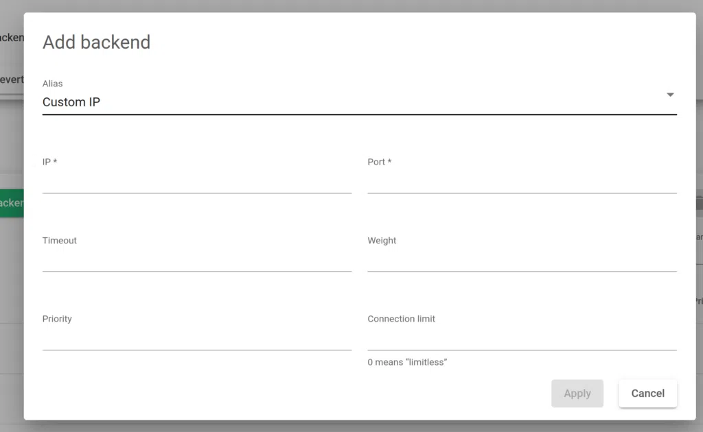 Regarding the Backends, the HTTP farm profile allows the configuration of the following properties: All the backends must be IPv4 or IPv6, and with the same IP version as the Farm VIP.