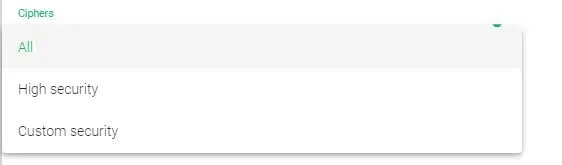 - Custom security. This command lets you customize your own ciphers through the Custom Ciphers field.