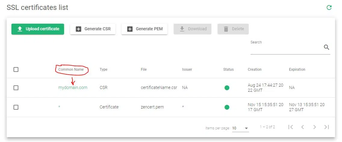 This segment pertains to accessing insights regarding SSL Certificates. Upon selecting any name within the Common Name category, the certificate’s comprehensive details will become visible.