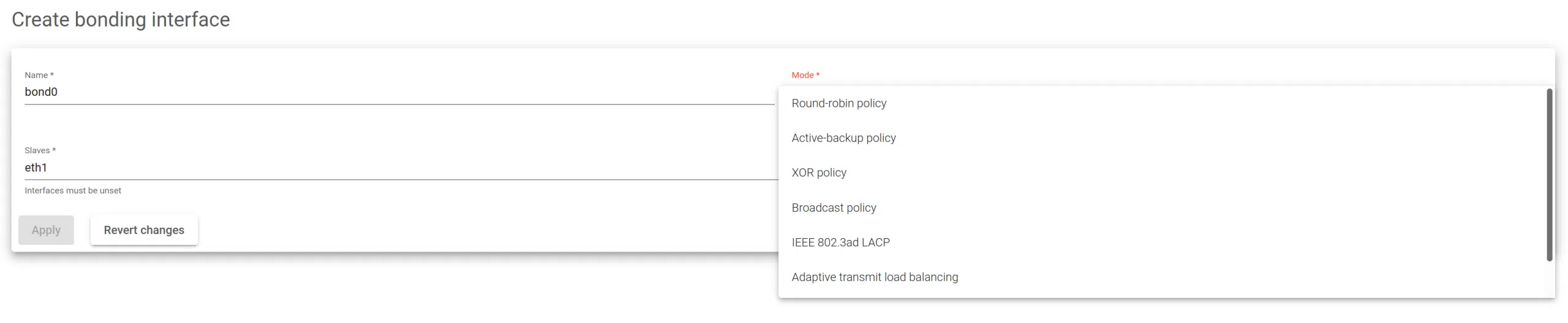 This section explains how to create a bonding interface and the available options.