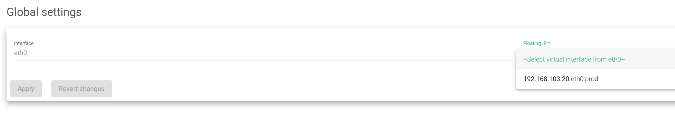 To apply the changes click the Apply button. When the configuration is updated, the Floating IP will be available in the cluster service.