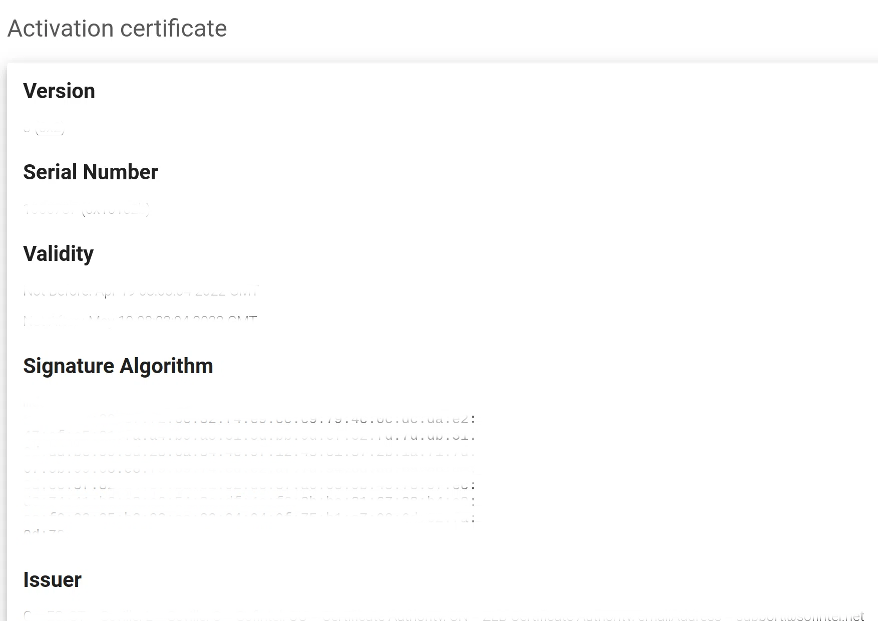 • OU / 1.2.3.4.5.8. Key generated by the appliance instance and used in activation certificate.