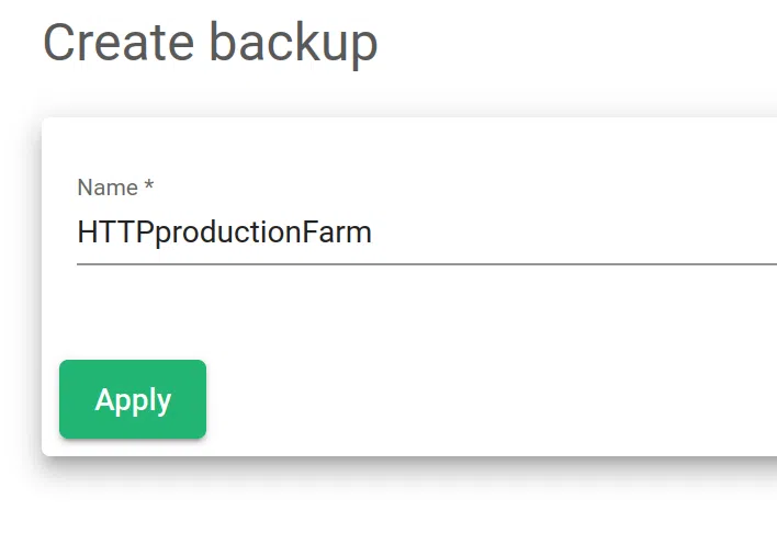 After selecting Create Backup from the drop-down menu, the creation form will be shown.