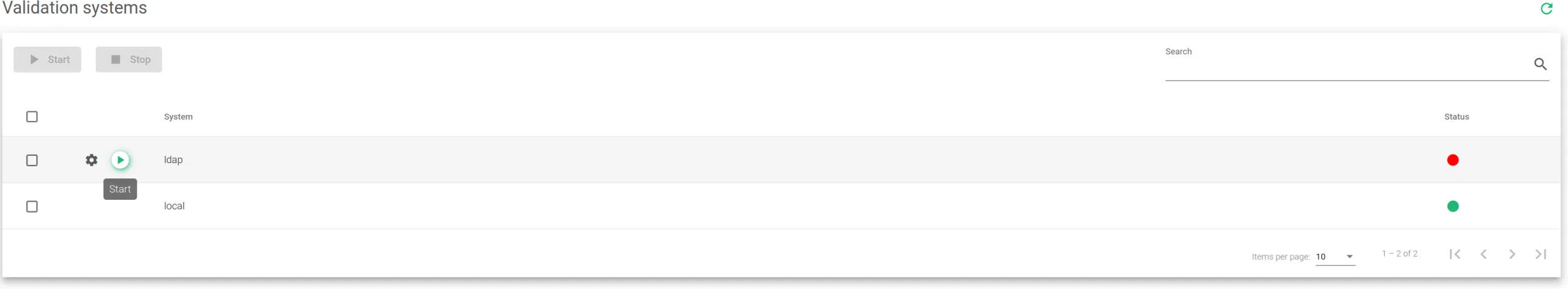• Start. To activate the usage of the authentication module.