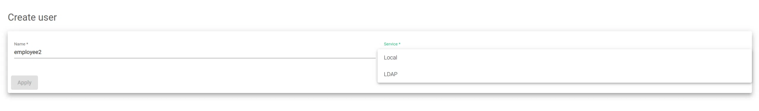 Service. Defines whether the user is accessing the Local or the Light Weight Access Protocol (LDAP) data origins.