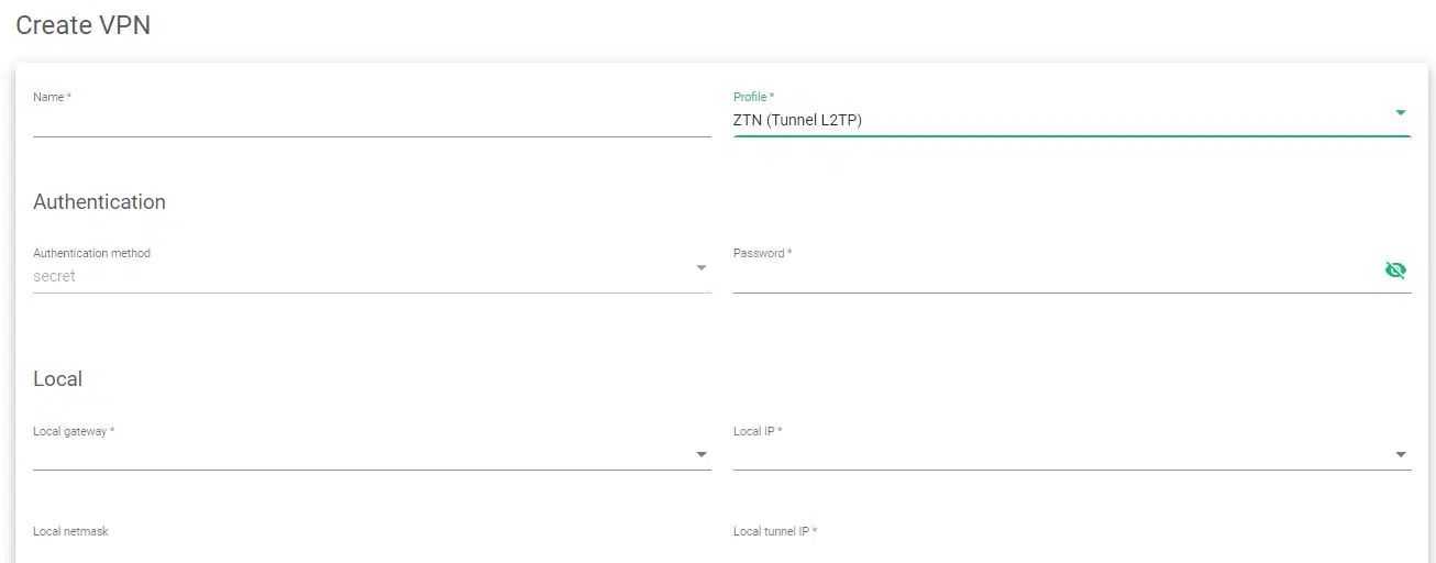 When you select any of the options, let’s say ZTN (Tunnel L2TP), it’ll open a wider form with more fields for you to fill. Follow the instructions carefully and fill out the form with the necessary details.