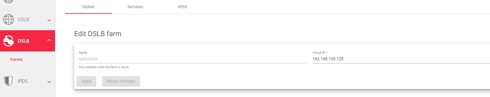 After creating a DSLB farm, we must add Services, Backends, and IPDS rules in this section. We will discuss about three settings categories; Global, Services, and IPDS