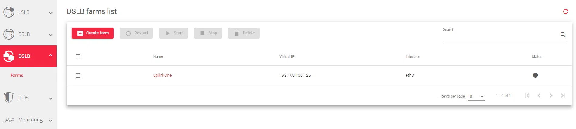 DSLB farms are route-based farms where the backends are uplink routers or gateways. This farm type is typically used to share several WAN router access channels using the load balancer as an uplink channel multiplexer. This means that DSLB farms can be used to create highly available communication links, or to increase the bandwidth between the router’s backend links.