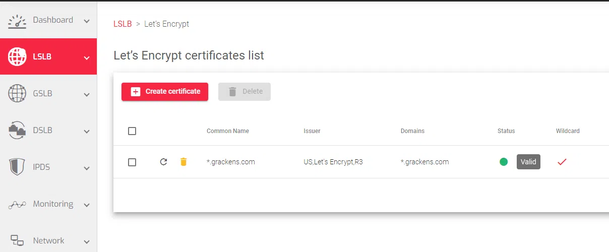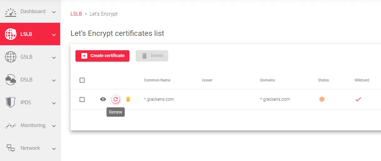 - Click LSLB >> Let’s Encrypt >> Create Certificate