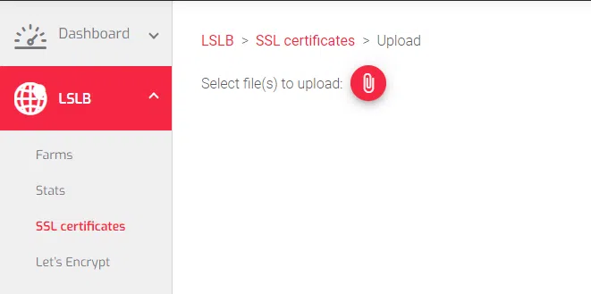 - A page with a paper clip will open prompting you to upload the SSL Certificate.