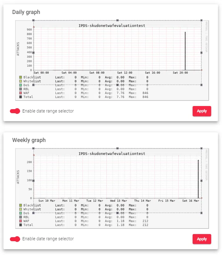 - Min: Shows the lowest count recorded for each IPDS block/attack type.