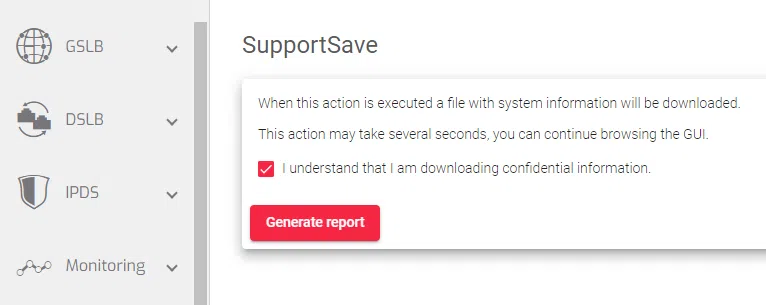 The SKUDONET Support Save feature allows users to create a snapshot of their load balancer node’s current state. This snapshot includes all of the information that the SKUDONET team needs to troubleshoot any problems that may occur, such as logs, configuration, and system status.