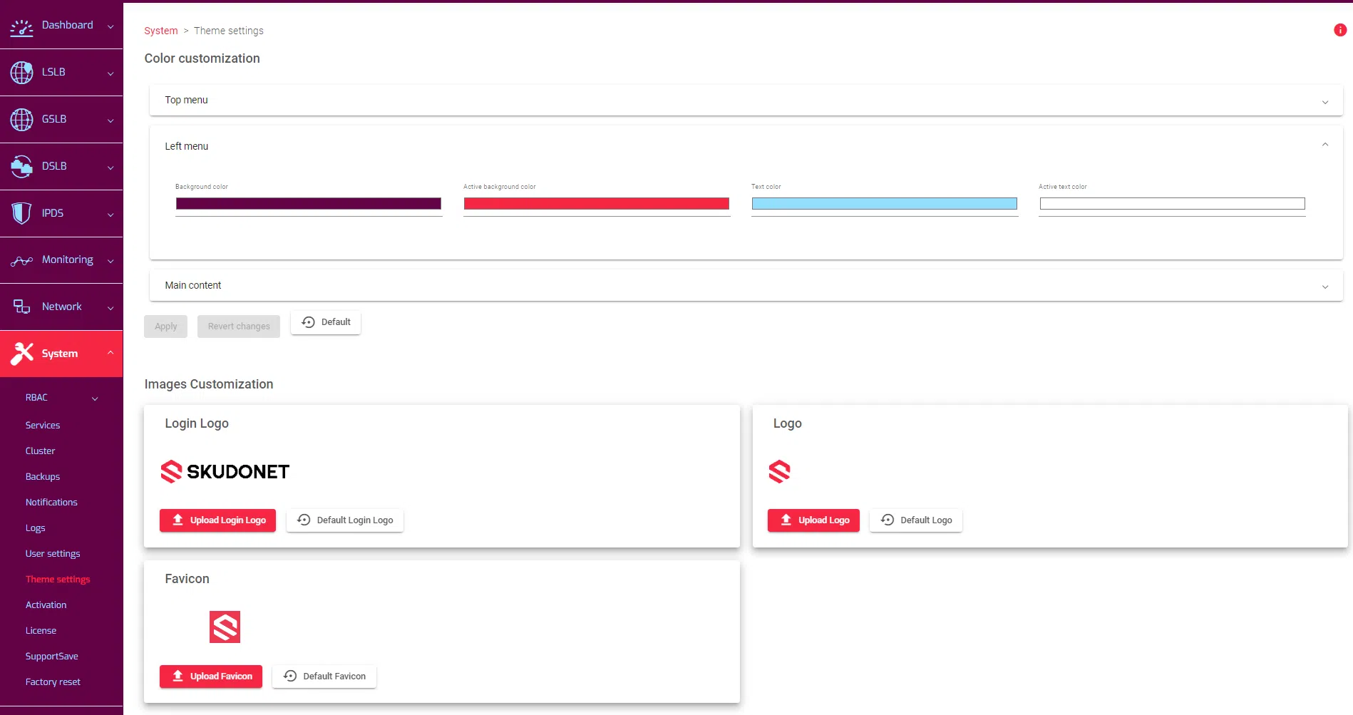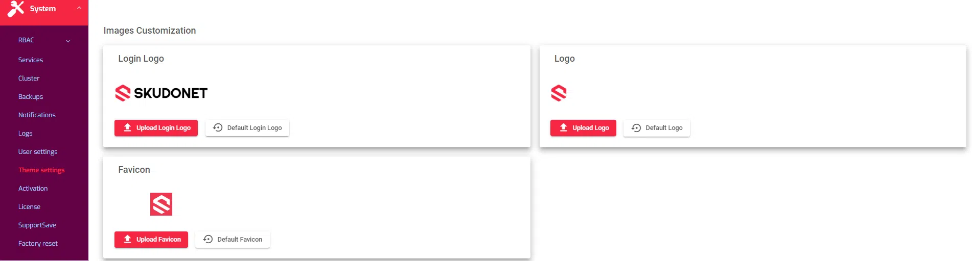 This section allows users to upload branding images, which will replace the default images uploaded by the SKUDONET development team.