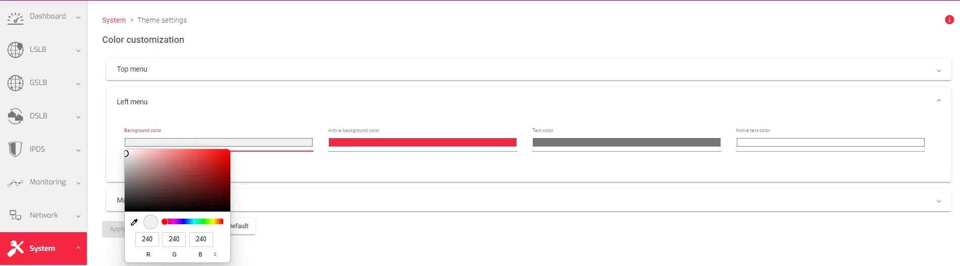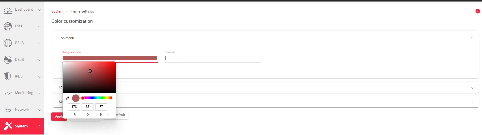 - In the Color Customization field, click the Left Menu option to expand it.