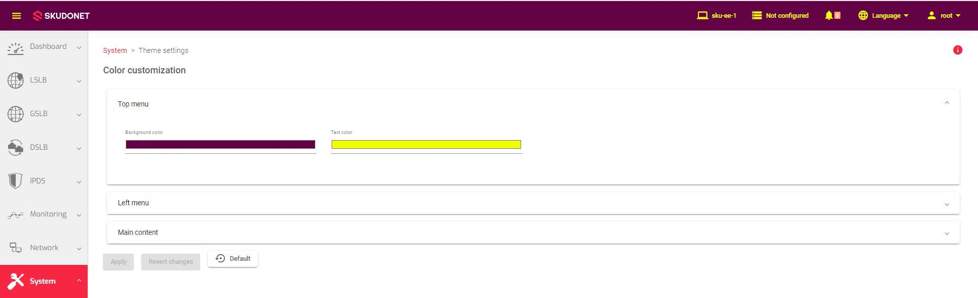 In SKUDONET ADC, one may customize the Web Interface to the feel of their brand. One may customize the background and text color, active background and active text color, and Content and Warning colors of the Main Content.